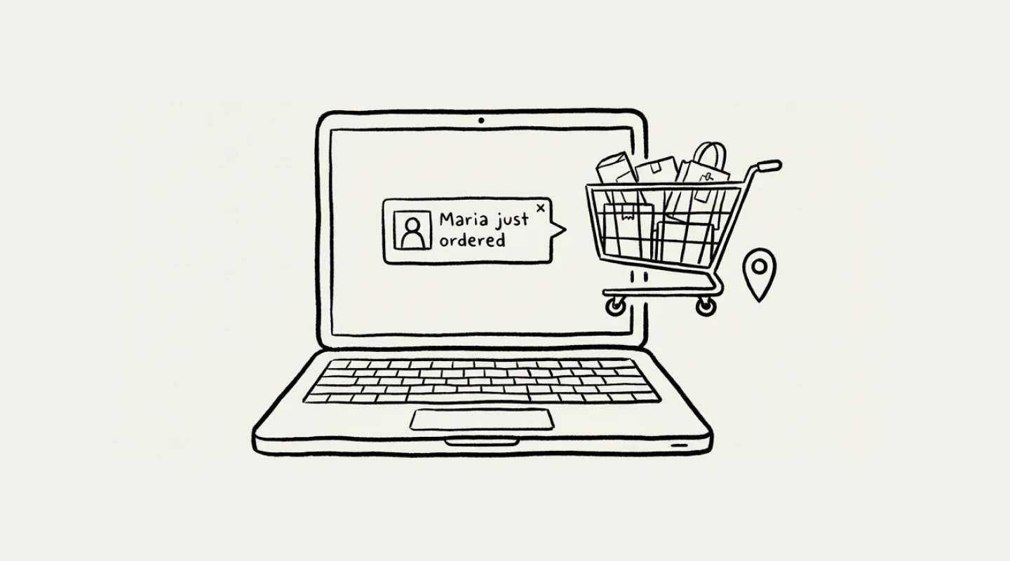 Live Activity Notifications – “Maria from NYC just ordered a red engraved tumbler” creates urgency while shouting ‘people love this!’.